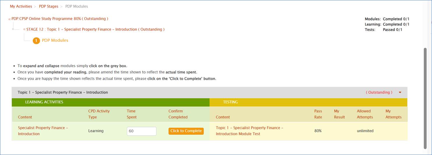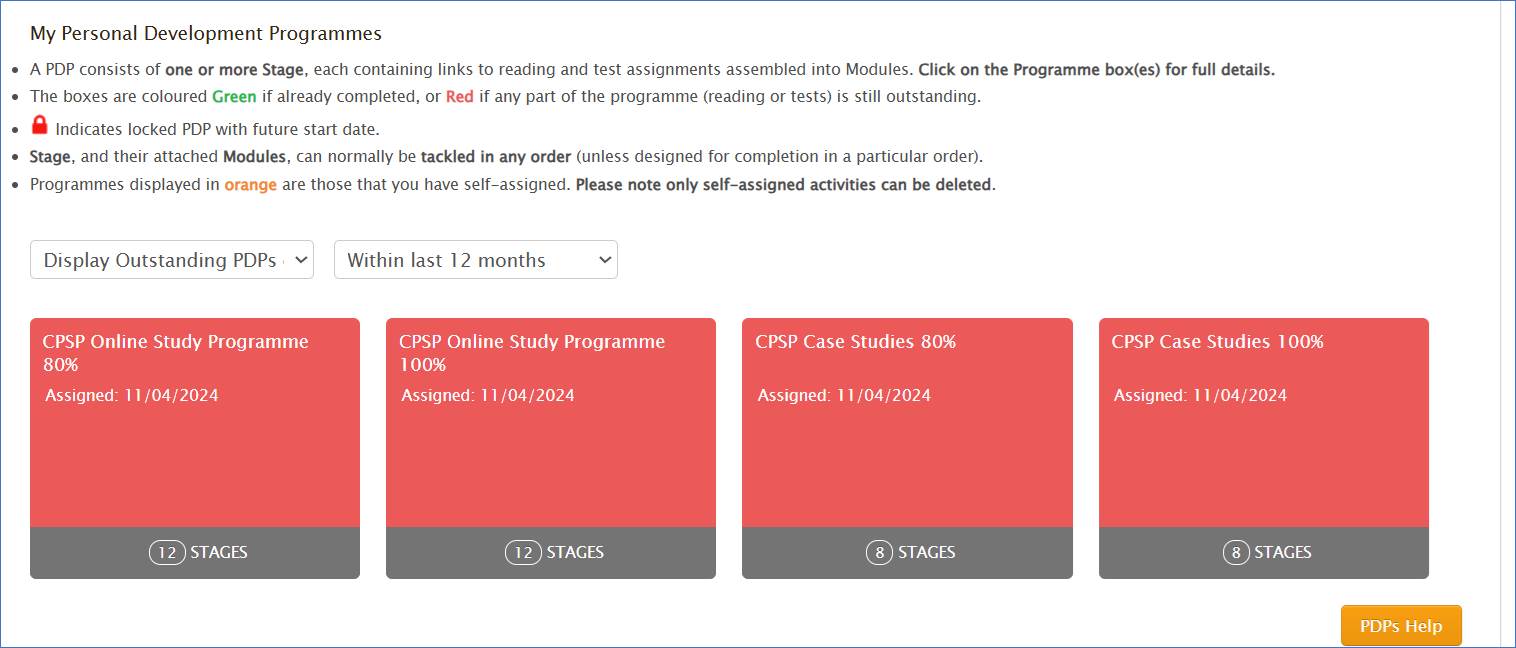 Clicking on ‘My Personal Development Programmes (PDPs) will bring you to a screen where you can see the online study programme.