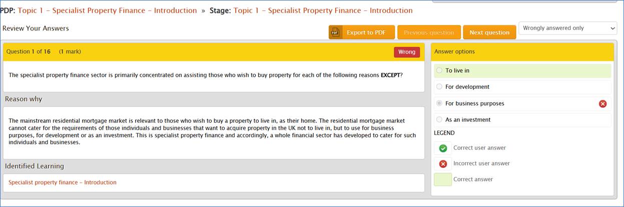 The system is specifically designed to hold your hand throughout your studies. If you get a question wrong, our unique ‘wrongly answered question reason why’ functionality gives you the knowledge you need to understand this fact in future.